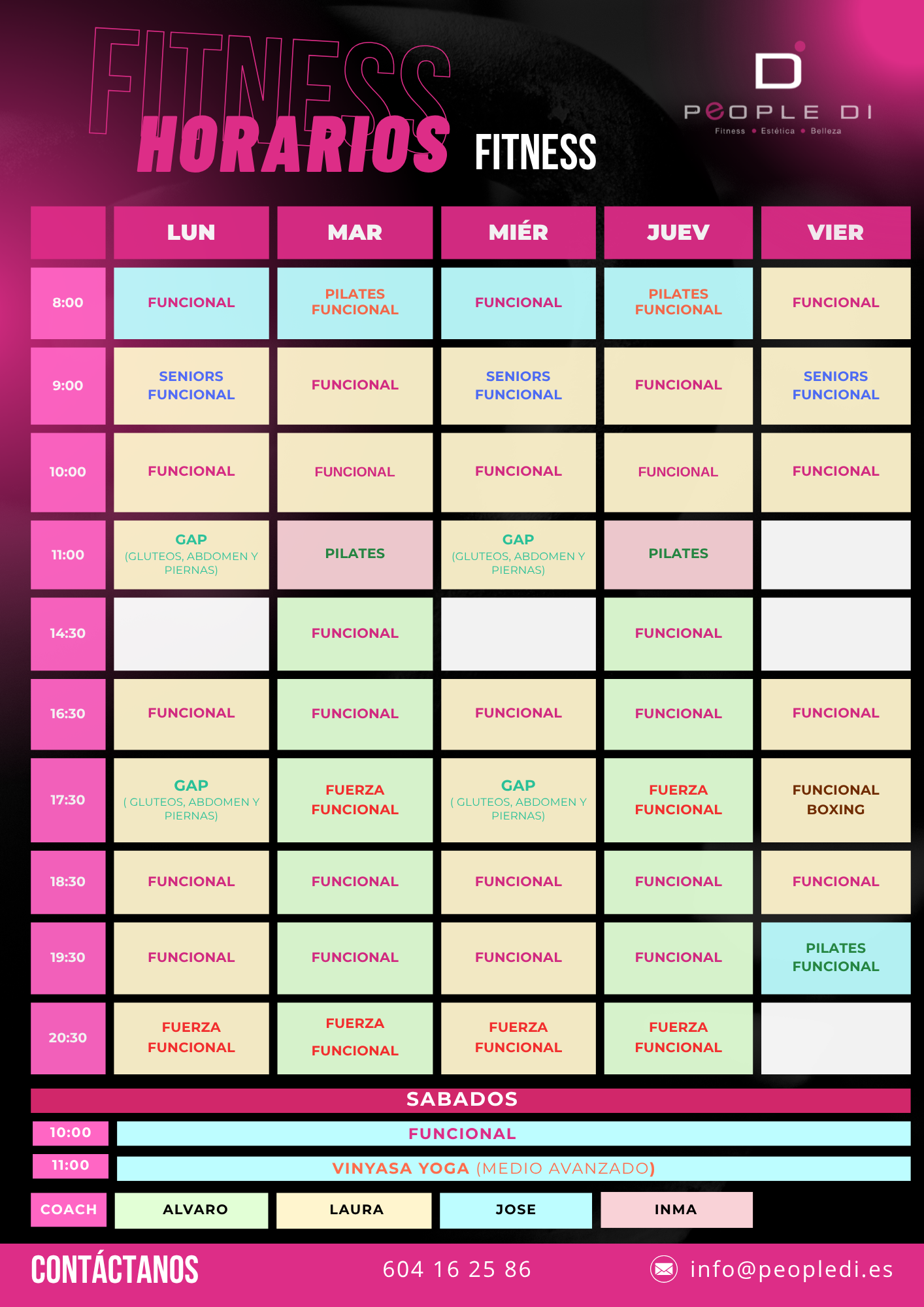 Yoga, Pilates, Defensa Personal, Zumba, Funcional, Hipopresivos, Fuerza Funcional, Pole Dance, Pilates para Embarazadas
